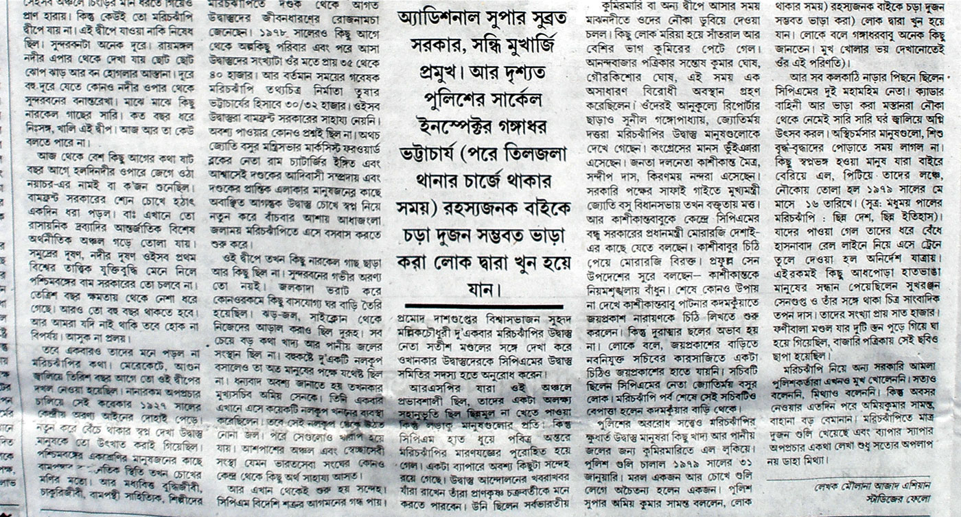 এই লেখাটি দৈনিক স্টেটসম্যান পত্রিকার ৯ জানুয়ারী ২০১০ এর সংখ্যায় প্রকাশিত হয় |