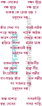 গিয়েই যখন ভাঙল ভুল বঙ্গ-নদীর রাঙল কূল জ্বাললো প্রদীপ কত্ত, মধুসূদন দত্ত মধুসূদন দত্ত--- |