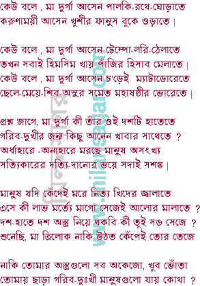 তবেই সুখে চেঁচিয়ে সবাই বলবে “ দুর্গা মাঈকী জয়” |
