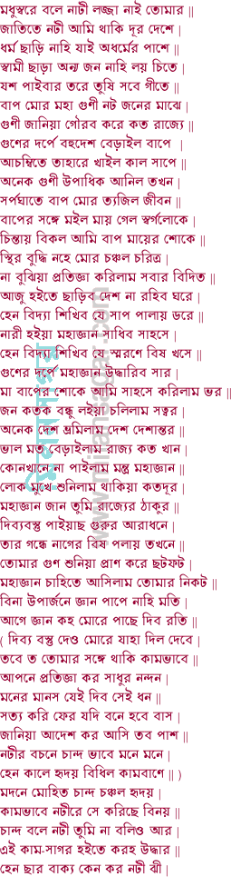 ১ হেন মতে শঙ্কুর বধ করিল মনসায় | নেতা নেতা বলিয়া ডাকিল সর্বদায় || বুদ্ধি বল নেতা মোরে ধোপার কুমারী |