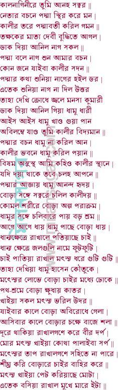 কবি বিজয় গুপ্ত-র মনসামঙ্গল কাব্য যে কোন কবিতার উপর ক্লিক করলেই সেই কবিতাটি আপনার সামনে চলে আসবে।