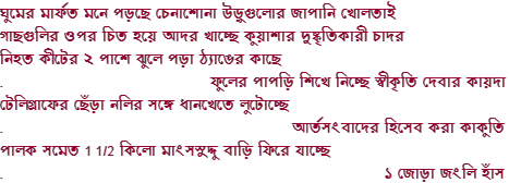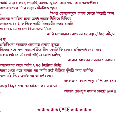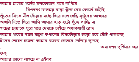 মশার উড়ন্ত ব্লাডারে ঠাসা আমার ক্রূর-রক্ত আঙুলে পিষে ঘেন্না কোর্ছে