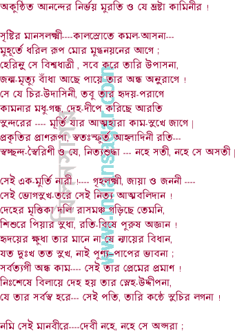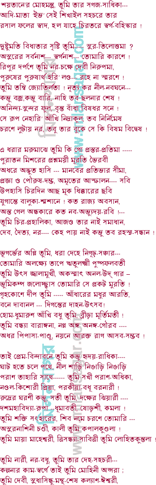 মানসমোহিনী অয়ি, মানবের দেহ-প্রসবিনী,