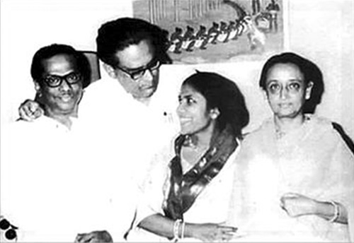 ও সন্ধ্যা মুখোপাধ্যায় এবং বেলা মুখোপাধ্যায়ের সাথে হেমন্ত মুখোপাধ্যায়।