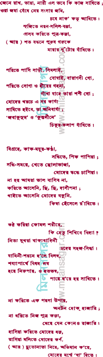জেনে রাখ, ভায়া, নারী এল ভবে কি কাজ সাধিতে