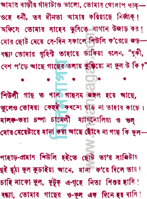 মোর ছোট মেয়ে সে-দিন সকালে শিউলি করেছে জড়---