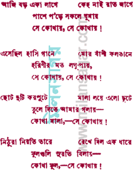 কুসুম ঝরিয়া পড়ে তারকা খসিয়া ঝরে জ্যোত্স্নার হাসিটি মিলায়! সে কোথায়, সে কোথায়!