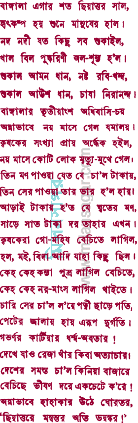 অতি ভয়ঙ্কর।” রস-সাগর এই ভীষণ মন্বন্তরের স্বরূপ বর্ণনা করে এই সমস্যাটি পূরণ