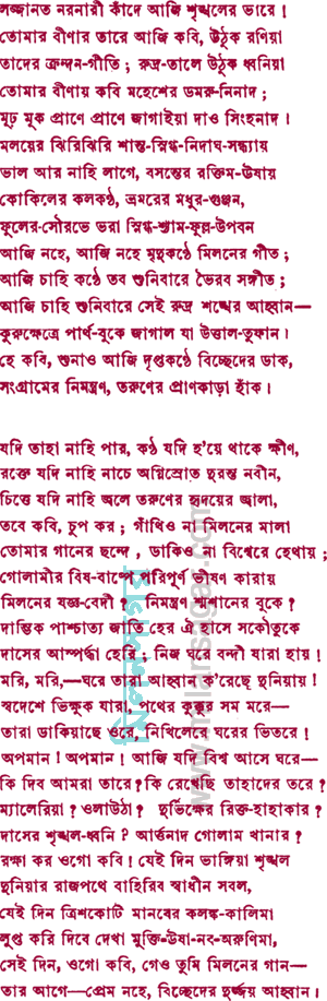 কবির "সবহারাদের গান" (১৯২৯) কাব্যগ্রন্থের কবিতা। আমাদের হাতে এসেছে ১৯৩০ এর