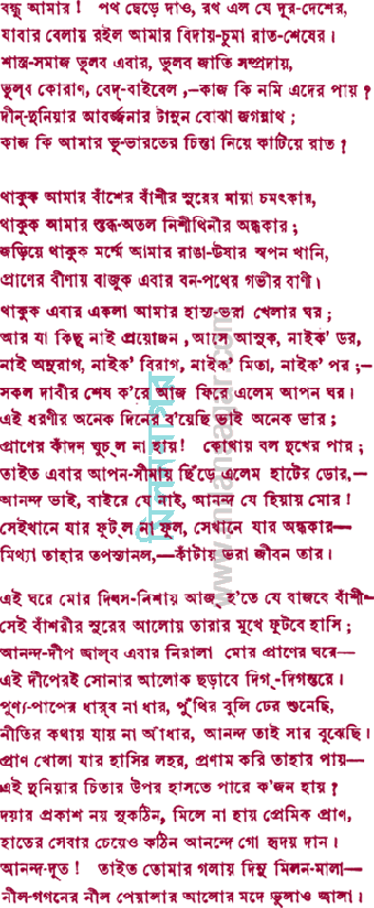 লইনু বিদায় আখি-জলে ভাসি ; ছিল যারা প্রতিবাসী