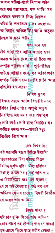 ( ২ ) অনন্ত আকাশ ঊর্দ্ধে --- নিয়ে বসুন্ধরা দিগন্ত বিস্তার, তোমারে লইল বরি’ স্নেহ-প্রীতি ভরা আনন্দে অপার! রবি-চন্দ্র-গ্রহ-তারা জ্যোতিঃ দিল দান ভরিয়া অন্তর,