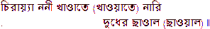 | সুবল বোলে গোঠে আল্যা ভণিতা লোচন কবি লোচন দাস এই পদটি ১৯২৬ সালে প্রকাশিত, সতীশচন্দ্র রায় সম্পাদিত বৈষ্ণব পদাবলী সংকলন “অপ্রকাশিত পদরত্নাবলী”, ৭০-পৃষ্ঠায় এইরূপে দেওয়া রয়েছে। পদটি তিনি পেয়েছিলেন পাবনা জেলার রায়- দৌলতপুরের বিহারীলাল অধিকারীর “দৌঃ” পুথি থেকে। ব্রজ-লীলা রসোদ্গার ॥ তথা রাগ॥ “সুবল বোলে--- “গোঠে আল্যা হাতের বেণু কোথা। হেট্-মাথে রৈছ কেন কও না মনের কথা॥” “তোমাকে কহিতে ভাই নাই কোন ডর। সেই দিন গেছিলাম আমি আয়ানের ঘর॥ আয়ানেরে না দেখি ঘরে নির্ভয় হইয়া। রাই-কোলে শুয়্যাছিলাম কাপড় মুড়ি দিয়া॥ নিদ্রায় বিভোল আমি আনন্দিত-মনে। কি জানি পাপিষ্ঠ মাগী ছিল কোন খানে॥ আচম্বিতে আসি মাগী ঘুচাল্যে কাপড়। বেণু ফেল্যা পালাইলাম হইয়া ফাঁফর॥” লোচন বোলে এই মর্দ্দ এত তোমার ভয়। কি করিত ঠেটা বুড়ী মায়্যা বই তো নয়॥ এই পদটি ১৯৪৬ সালে প্রকাশিত, হরেকৃষ্ণ মুখোপাধ্যায় সম্পাদিত বৈষ্ণব পদাবলী সংকলন “বৈষ্ণব পদাবলী”, ৪৭১-পৃষ্ঠায় এইরূপে দেওয়া রয়েছে। শ্রীরাধার উক্তি ॥ তথারাগ॥ সুবল বোলে গোঠে আল্যা হাতের বেণু কোথা। হেঁট মাথে রৈছ কেন কও না মনের কথা॥ তোমাকে কহিতে ভাই নাই কোন ডর। সেই দিন গেছিলাম আমি আয়ানের ঘর॥ আয়ানেরে না দেখি ঘরে নির্ভয় হইয়া। রাই কোলে শুয়্যাছিলাম কাপড় মুড়ি দিয়া॥ নিদ্রায় বিভোল আমি আনন্দিত মনে। কি জানি পাপিষ্ঠ মাগী ছিল কোনখানে॥ আচম্বিতে আসি মাগি ঘুচালো কাপড়। বেণু ফেল্যা পালাইলাম হইয়া ফাঁফর॥ লোচন বোলে এই মর্দ্দ এত তোমার ভয়। কি করিত ঠেটা বুড়ী মায়্যা বই তো নয়॥ এই পদটি ১৯৮৫ সালে প্রকাশিত, কাঞ্চন বসু সম্পাদিত পদাবলী সংকলন "বৈষ্ণব পদাবলী", ২৪৯-পৃষ্ঠায় এইরূপে দেওয়া রয়েছে। সুবল বোলে গোঠে আল্যা . হাতের বেণু কোথা। হেঁট মাথে রৈছ কেন . কও না মনের কথা॥ তোমাকে কহিতে ভাই . নাই কোন ডর। সেই দিন গেছিলাম আমি . আয়ানের ঘর॥ আয়ানেরে না দেখি ঘরে . নির্ভর হইয়া। রাই কোলে শুয়্যাছিলাম . কাপড় মুড়ি দিয়া॥ নিদ্রায় বিভোল আমি . আনন্দিত মনে। কি জানি পাপিষ্ঠ মাগী . ছিল কোনখানে॥ আচম্বিতে আসি মাগি . ঘুচালো কাপড়। বেণু ফেল্যা পালাইলাম . হইয়া ফাঁফর॥ লোচন বোলে এই মর্দ . এত তোমার ভয়। কি করিত ঠেটা বুড়ী . মায়্যা বই তো নয়॥ . ************************* . সূচীতে . . . মিলনসাগর |