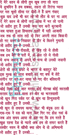 1962 में चीन के साथ युद्ध मे हूए शहीदों की कुरबानी पर गीत