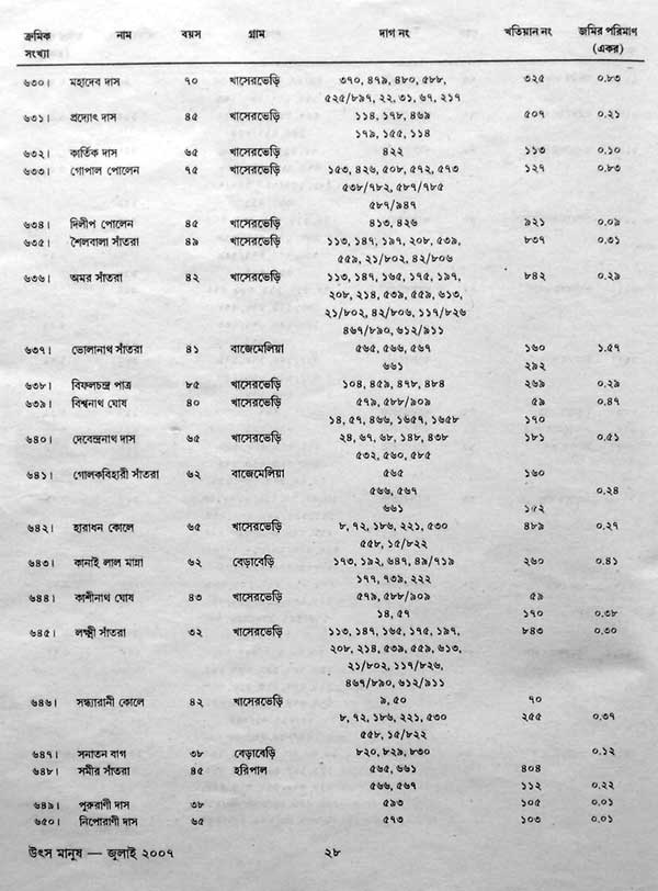 নাম, বয়স, মৌজা, গ্রাম, দাগ নং,