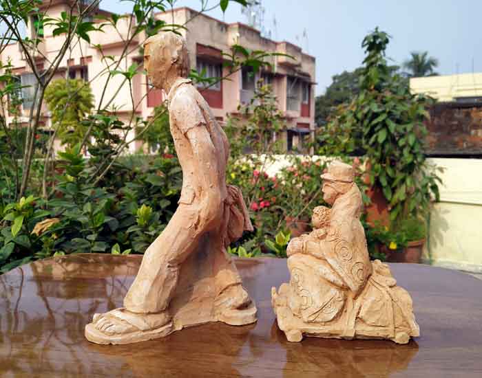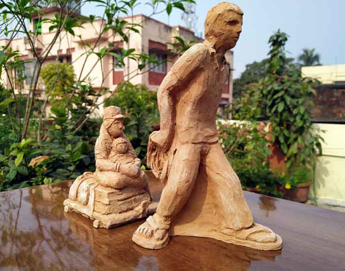 Terracotta sculptures on Migrant Labourers during Corona Lockdown by Milan