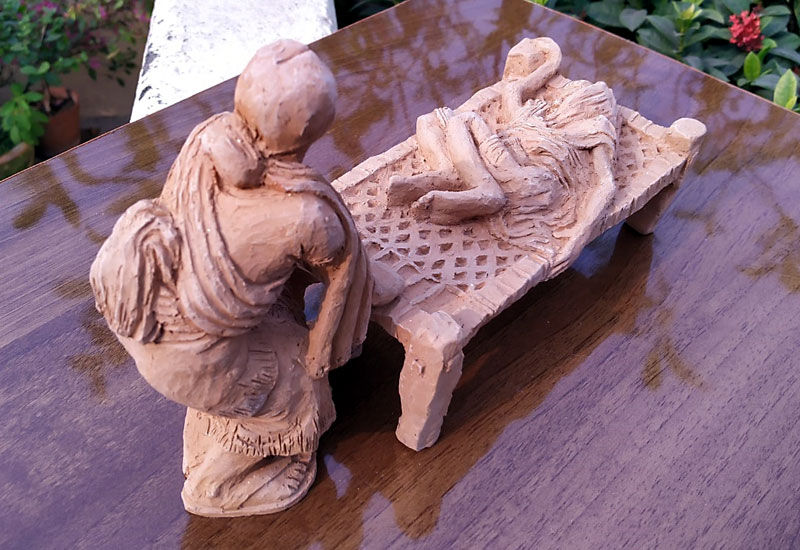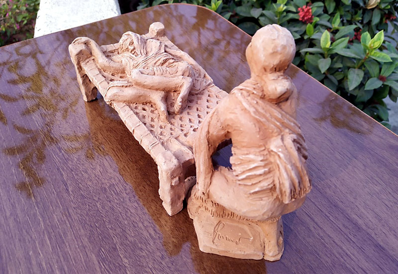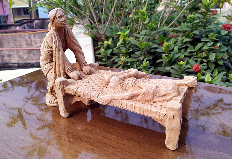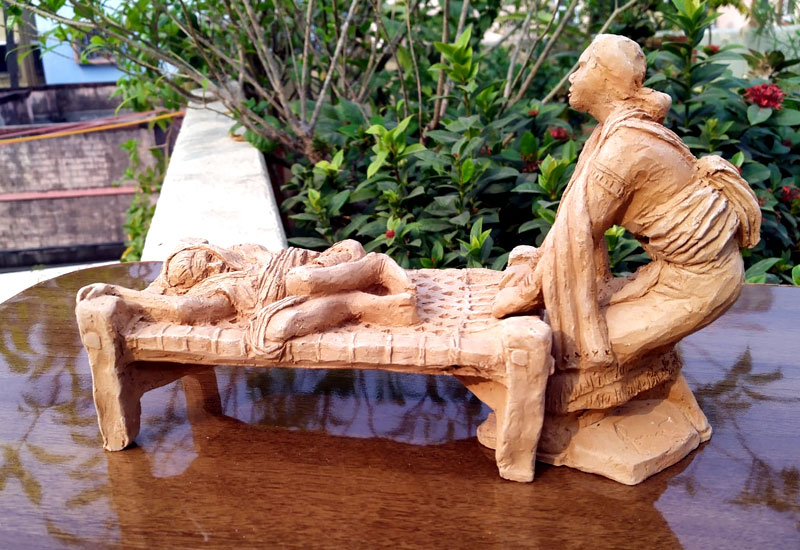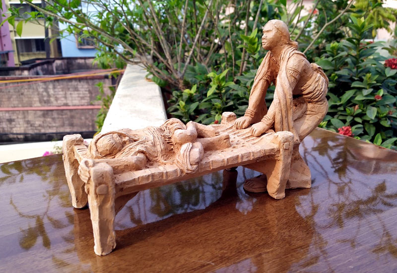 Terracotta sculptures on Migrant Labourers during Corona Lockdown by Milan