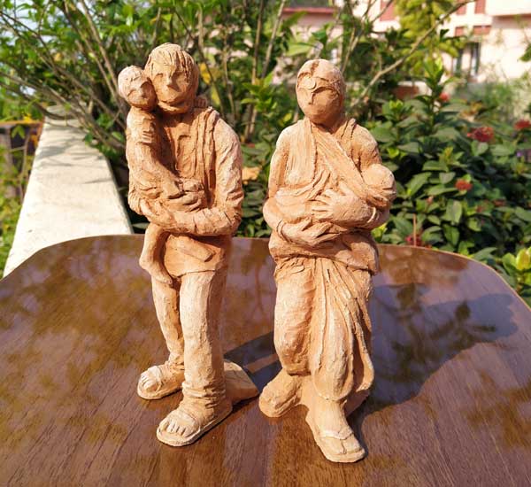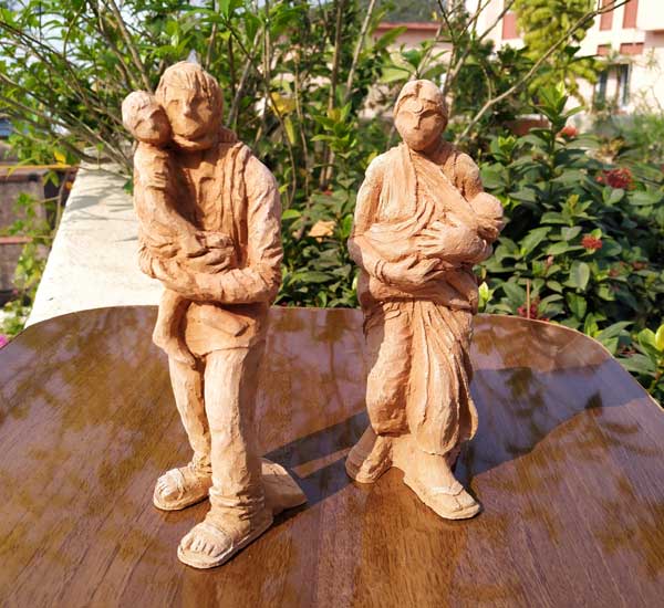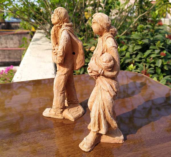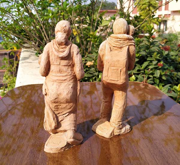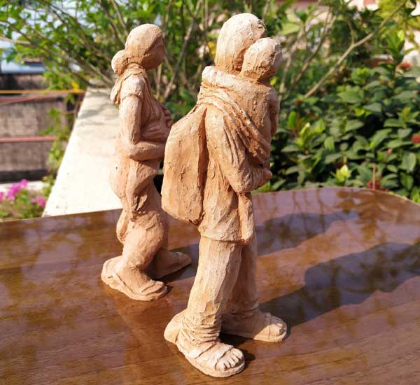Terracotta sculptures on Migrant Labourers during Corona Lockdown by Milan