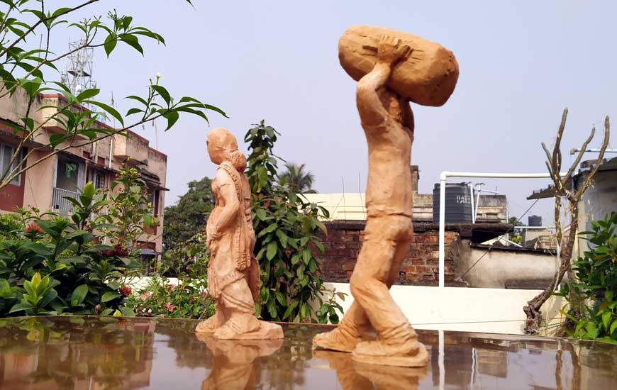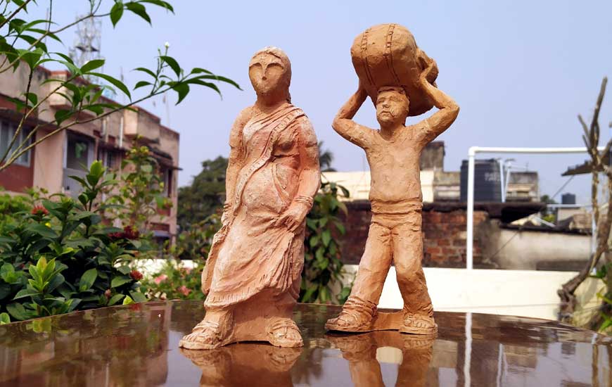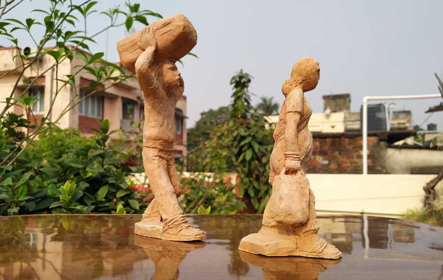 Terracotta sculptures on Migrant Labourers during Corona Lockdown by Milan