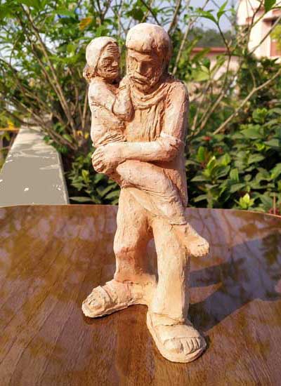 Terracotta sculptures on Migrant Labourers during Corona Lockdown by Milan
