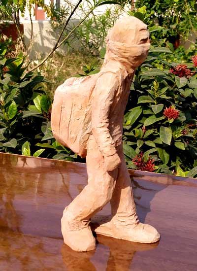 Terracotta sculptures on Migrant Labourers during Corona Lockdown by Milan