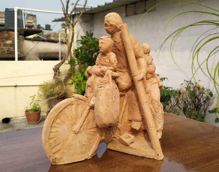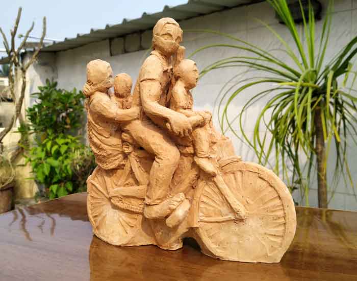 Terracotta sculptures on Migrant Labourers during Corona Lockdown by Milan