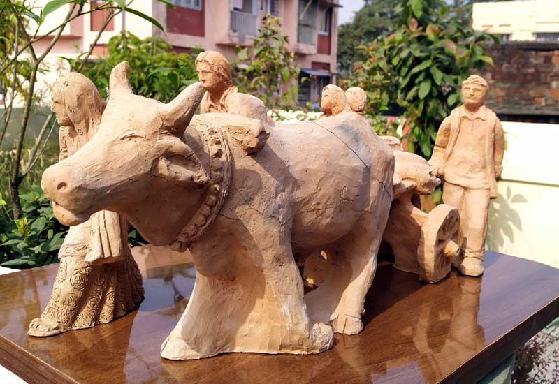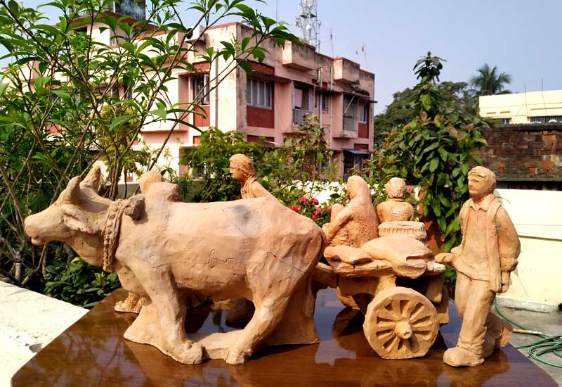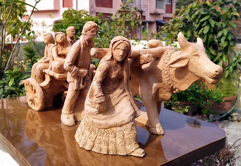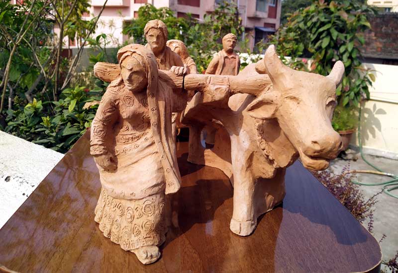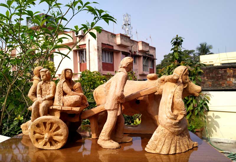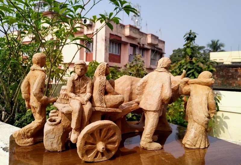 Terracotta sculptures on Migrant Labourers during Corona Lockdown by Milan