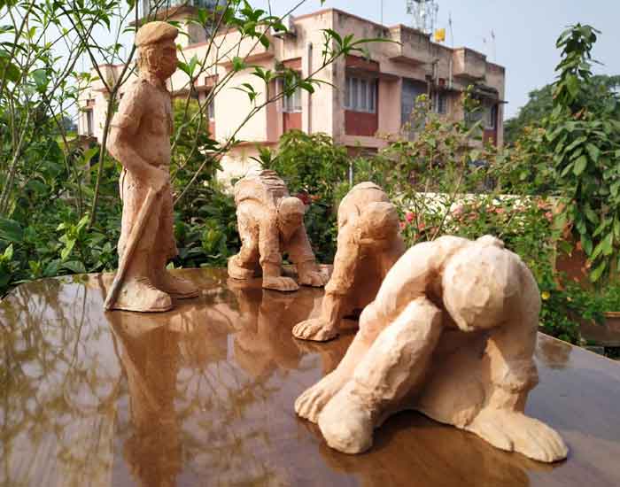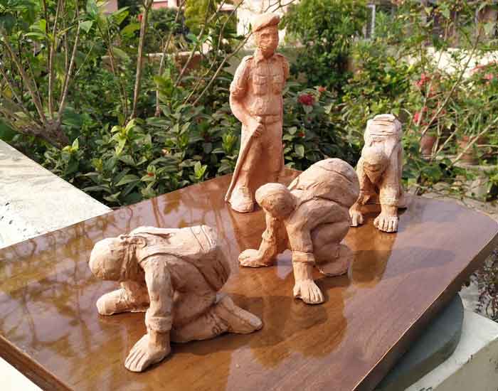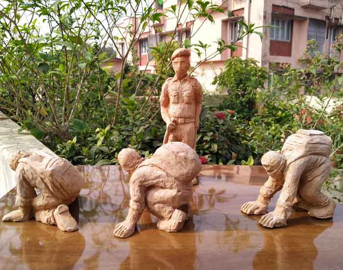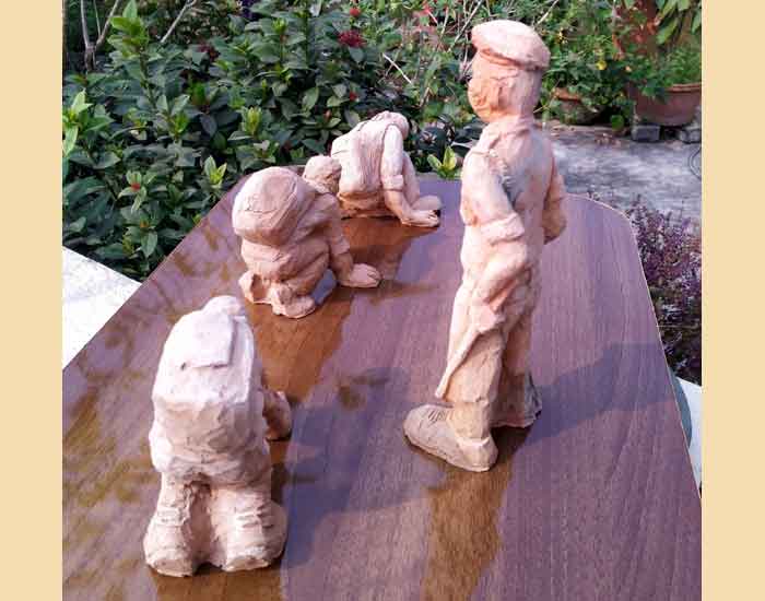 Terracotta sculptures on Migrant Labourers during Corona Lockdown by Milan