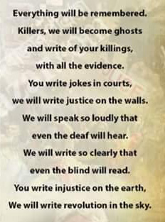 | याद रखा जाएगा तुम रात लिखों, हम चाँद लिखेंगे तुम जेल में डालो, हम दिवार फाँड़ लिखेंगे तुम हमें कत्ल कर दो, हम बनके भूत लिखेंगे तुम्हारे कत्ल के सारे सबूत लिखेंगे और तुम अदालतों से बैठकर चुटकुले लिखो हम सड़कों दिवारों पे इनसाफ लिखेंगे बहरे भी सुन ले इतनी जोप से बोलेंगे अन्धे भी पढ़ ले इतना साफ लिखेंगे तुम काला कमल लिखो, हम लाल गुलाब लिखेंगे तुम ज़मीन पे जूल्म लिख दो आसमान पे इनकलाब लिखा जाएगा सब याद रखा जाएगा |