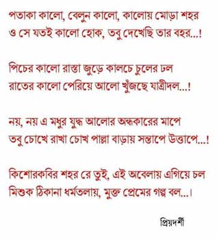 | কবি প্রিয়দর্শী চক্রবর্তী আসানসোলের কলেজ শিক্ষক। কবিতাটি সংগ্রহ করে পাঠিয়েছেন কবি রাজেশ দত্ত তোলা হয়েছে ১২.১.২০২০ |